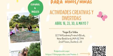 La serie de yoga bilingüe es un programa en el que los niños experimentarán un espacio multicultural, inclusivo y con opportunidades para interacciones interpersonales a través de la práctica del yoga. Aprenderán sobre la conciencia, la comprensión, la aceptación, la armonía y el amor. El programa utilizará la technica de relatar cuentos para cautivar a los niños y facilitarles el yoga de una manera mas divertida. Cada clase tendra una historia differente combinada con la practica de yoga. Esta es una experiencia bilingüe que beneficia a la comunidad minoritaria y a cualquier niño/a que desee participar en la experiencia multicultural del yoga bilingüe mientras aprende sobre otras culturas.